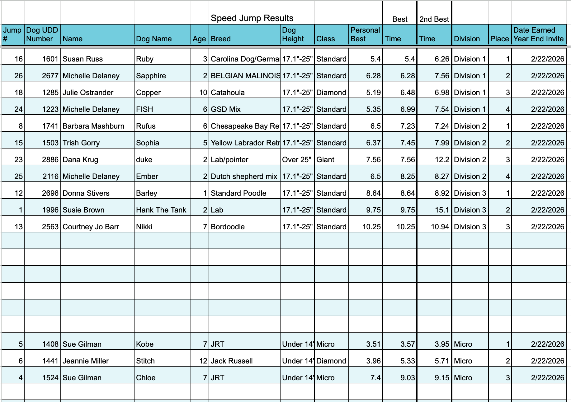 Speed Jump Results