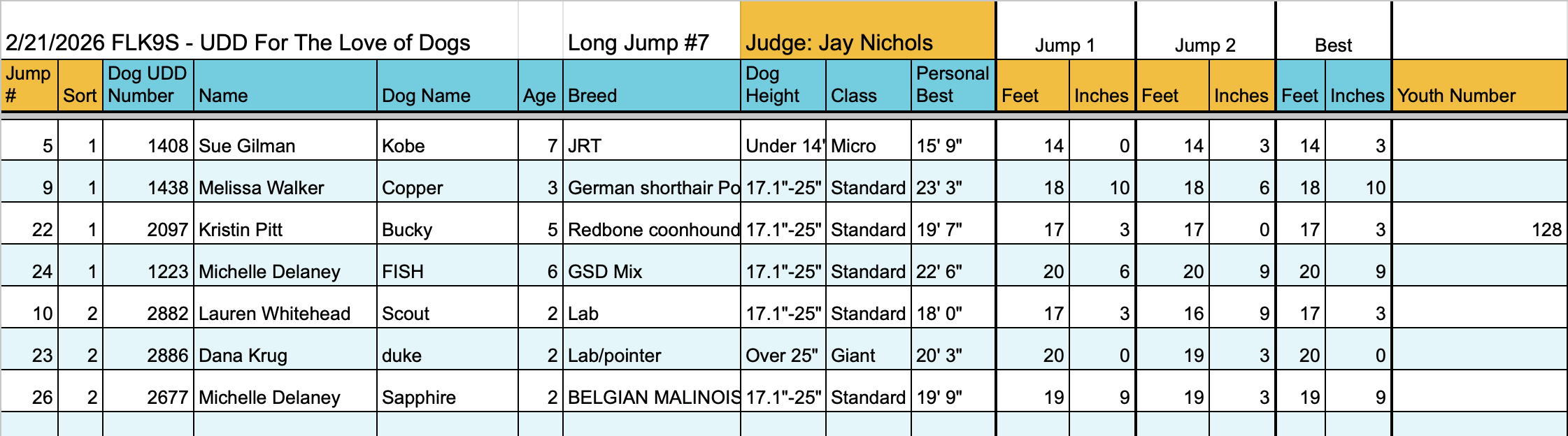 Long Jump Results