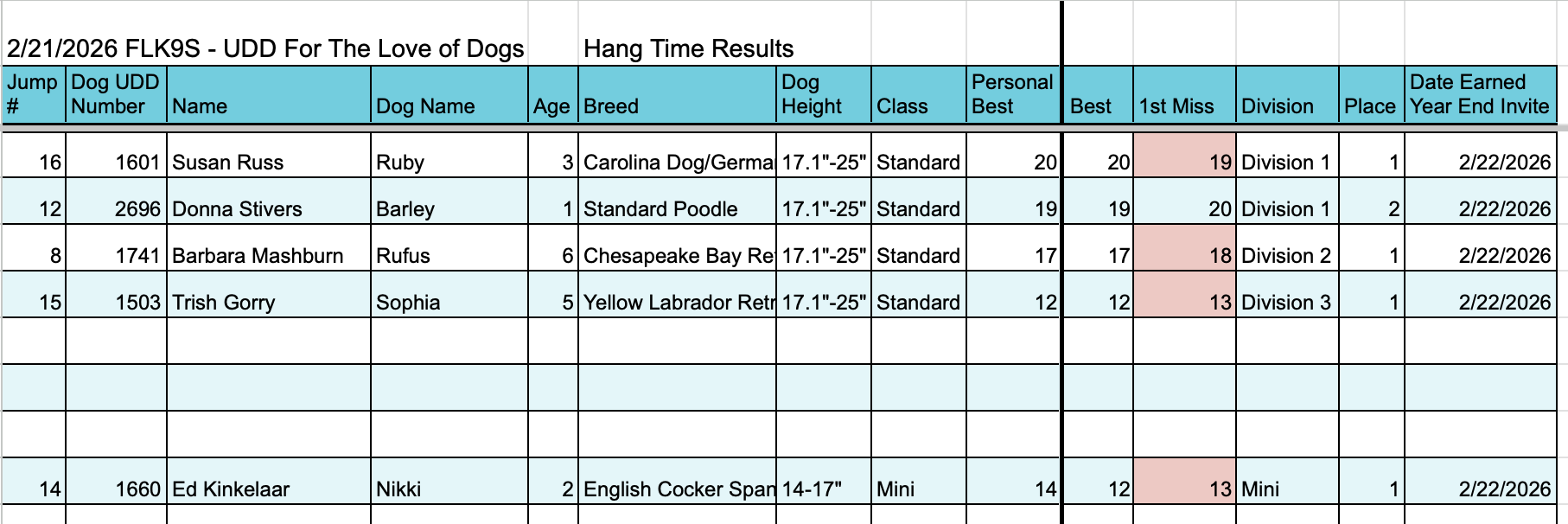 Hang Time Results